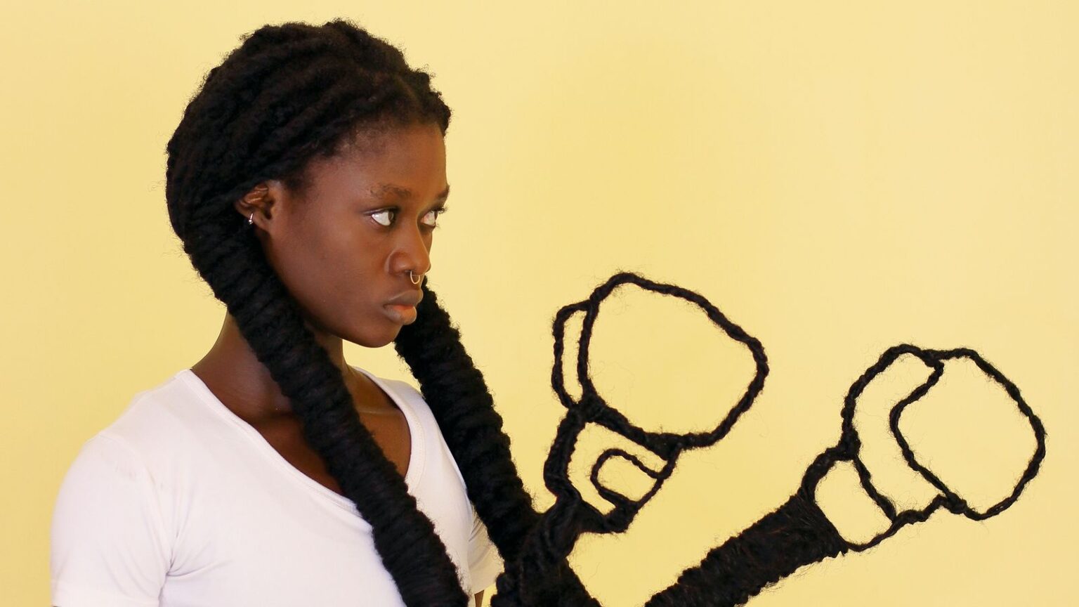 Ganz anders die Selbstporträts der Ivorerin Laetitia Ky, die ihre langen schwarzen Haare stolz und mit souveränem Humor mal zu Boxhandschuhen, mal zu den Konturen des afrikanischen Kontinents formt.