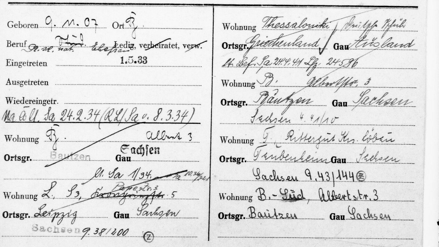 Zwar liegen die entsprechenden Dokumente auch im Bundesarchiv in Berlin, dort jedoch heißt es unter dem Punkt „Zugangsmöglichkeiten“ [externer Link]: „Recherchen zu einzelnen Personen in der Mitgliederkartei werden auf Antrag durch die Mitarbeiterinnen und Mitarbeiter des Bundesarchivs durchgeführt. Nutzerinnen und Nutzer erhalten daraufhin eine entsprechende Auskunft und – sofern vorhanden – Scans der Karteikarten.“ Online sei der Zugriff „aufgrund noch bestehender personenbezogener Schutzfristen über das Internet grundsätzlich nicht möglich“.