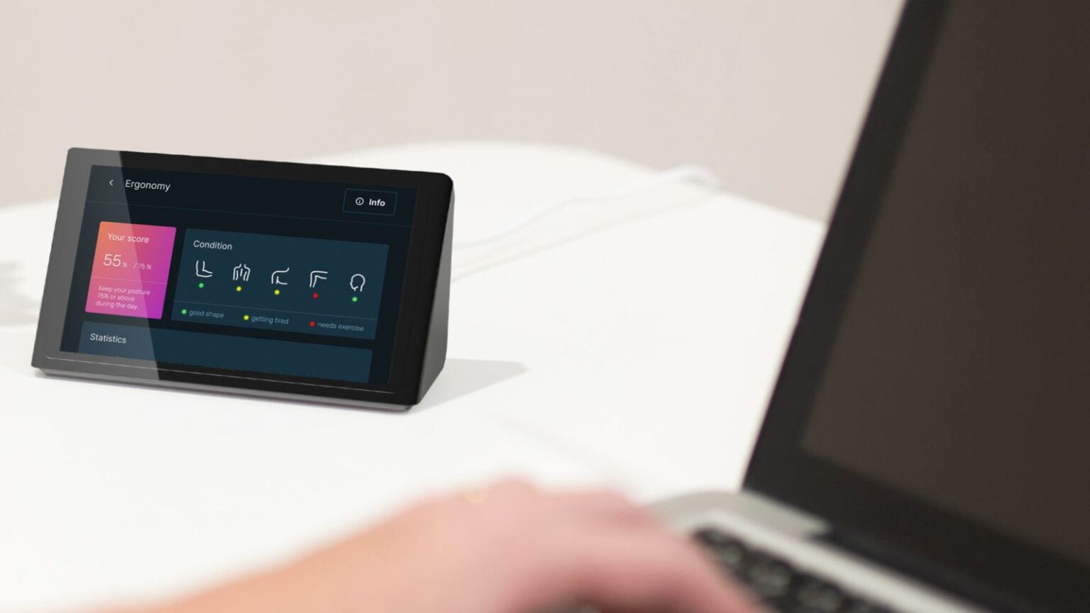 Bei Simon Fiechtner liegt um neun Uhr morgens noch alles im optimalen Bereich: Er hat schon 0,3 Liter Wasser getrunken, sitzt erst seit einer halben Stunde und die Luftqualität ist gut. Das misst alles Isa, die auf seinem Schreibtisch steht. Ein Gerät, so groß wie ein Smartphone, das ihn und sein Arbeitsumfeld mit Sensoren dauerhaft überwacht.